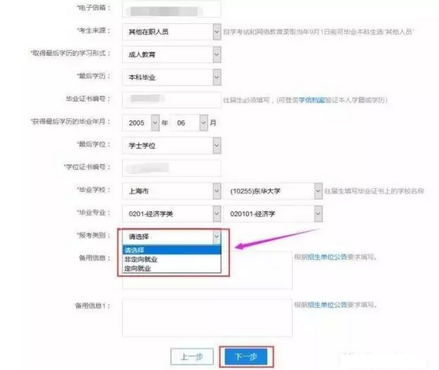 Tip:报考best365中国官方网站非全日制研究生的培养方式均选择“定向就业”。填写这么多个人信息可要有耐心哦!