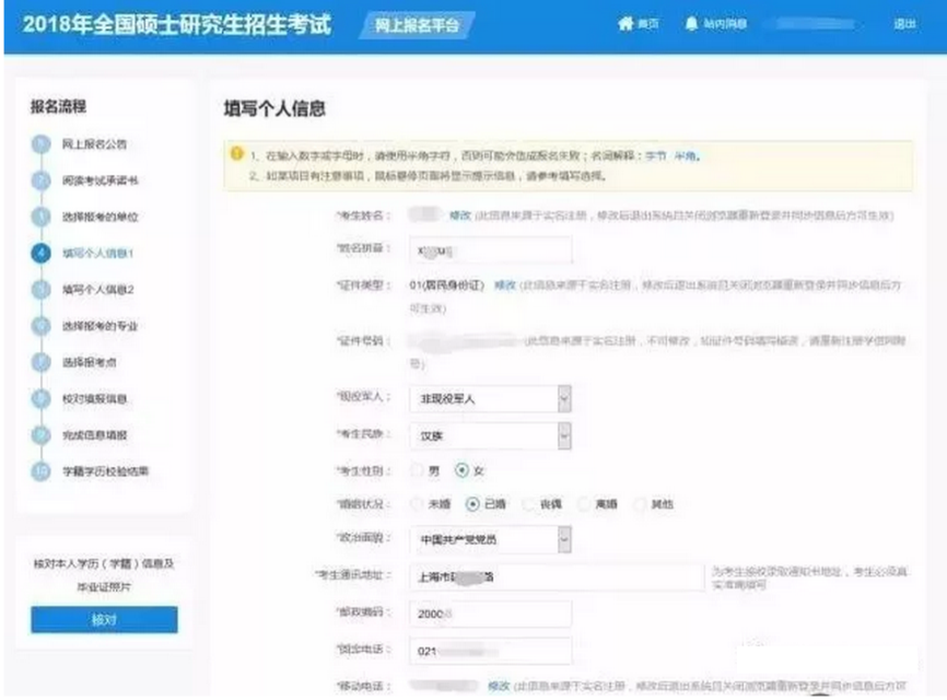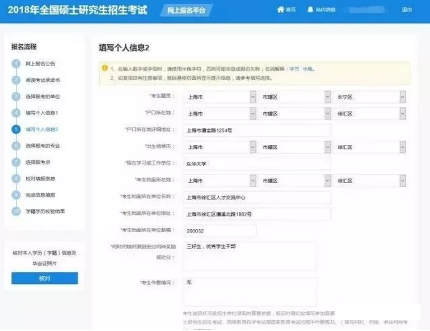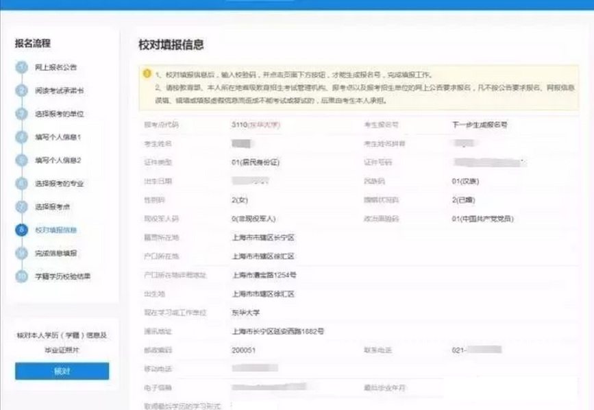 第十一步:校对报名信息