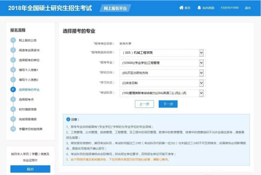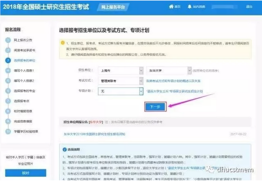 第九步:选择报考专业