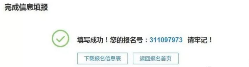 Tip:生成9位数报名号即研招网报名成功,点击“返回首页”可以看到如下图信息