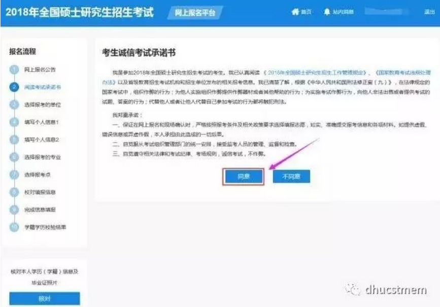 第五步:阅读教育部公告并同意承诺书