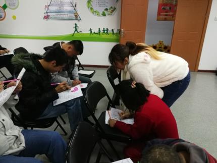 在阳光之家,积极分子们和智残人士们一起开展了如填色游戏、七巧玲珑、两人三足以及肢体协调训练等益智趣味游戏。尽管中间的各种环节充满了辛苦和困难,但是从刚开始的陌生和紧张到最后的默契和快乐,积极分子们无不在与智残人士的互动中感受到志愿服务带来的快乐和满足。短短三个小时的时间里,积极分子们就和阳光之家的智残人士门建立起了深厚的情谊,大家纷纷表示,一定要再次来到阳光之家,为智残人士们带来快乐,带去美好。活动结束后,大家纷纷合影留念,现场笑意融融,气氛融洽。