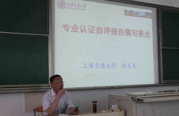 (陈关龙教授做题为“专业认证自评报告撰写要点”的专题报告)