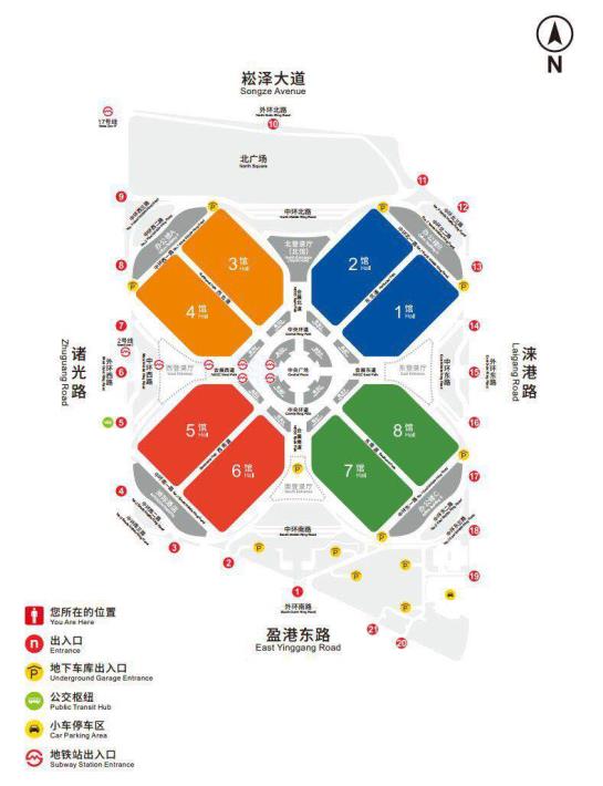 然而,在这么大的建筑空间内,为参观者在行动中提供直接指引信息的标识导向系统却不能与之相配。由于建筑面积较大,展馆较多,各类业态融合,周边交通的多样化也给参展人员带来很多不便,很容易在这样复杂的环境中迷失方位。首先,会展中心建筑内部呈现出一个圆形,参展人员很容易在其中迷失方向;其次,场馆信息(命名、层次、内容)让人难以理解。最后,现有的标识导向系统设计存在不规范,不统一,不连续,不醒目,不正确等问题。