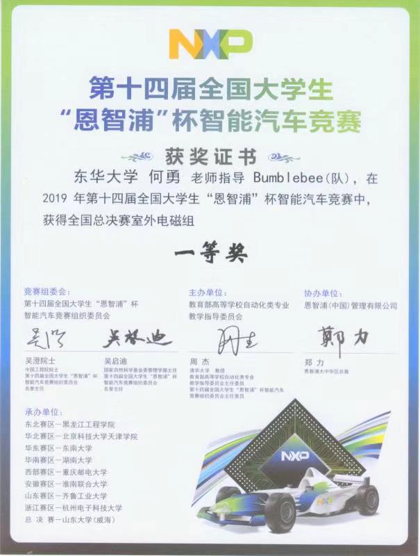 8月25日,2019年第十四届全国老员工“恩智浦”杯智能汽车全国总决赛在山东大学威海校区落下帷幕。由机械学院员工田威、张莲茹等组成的室外电磁组团队继在华东赛区预选赛中获得一等奖后,在何勇教授的指导下经过激烈角逐,获得全国总决赛一等奖。这是best365中国官方网站员工首次在该项赛事中获得佳绩,实现历史性突破。