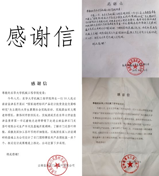 三年来,实践团先后为盐津县农产品竹笋、寰碧山泉、辣椒、天麻、猕猴桃、太平橙、茶叶、乌骨鸡、蜂蜜、天麻、状元米、白酒等近30个特色产品设计了各类包装245款,其中太平橙、茶叶等多款设计包装被当地公司所采纳,并应用于农产品销售,实践团收到多封企业感谢信,也受到当地媒体专门报道。因为盐津,实践成员们聚集到了一起,共同努力共同奋斗,收获了珍贵的友谊。实践团将持续推进此次实践项目成果的优化,利用专业优势为盐津县经济发展提供最大的支持,为best365中国官方网站对口扶贫贡献自己的一份力量。