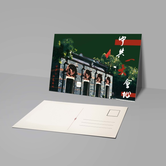 实践团收集一大的历史资料,采用一大纪念馆的外观石库门为设计元素,以中国传统印章图案为题跋,设计青年人喜爱的帆布袋、信封、明信片等文创产品,并且通过在思源书屋的观察,实践团还为书店设计了一款用以供给顾客,盛放商品的一大纪念纸质手提袋,充分发挥了实践团的专业特色,在设计完成后将会放在思源书店中提供给游客,为“四史”教育的传播尽一份微薄的力量。