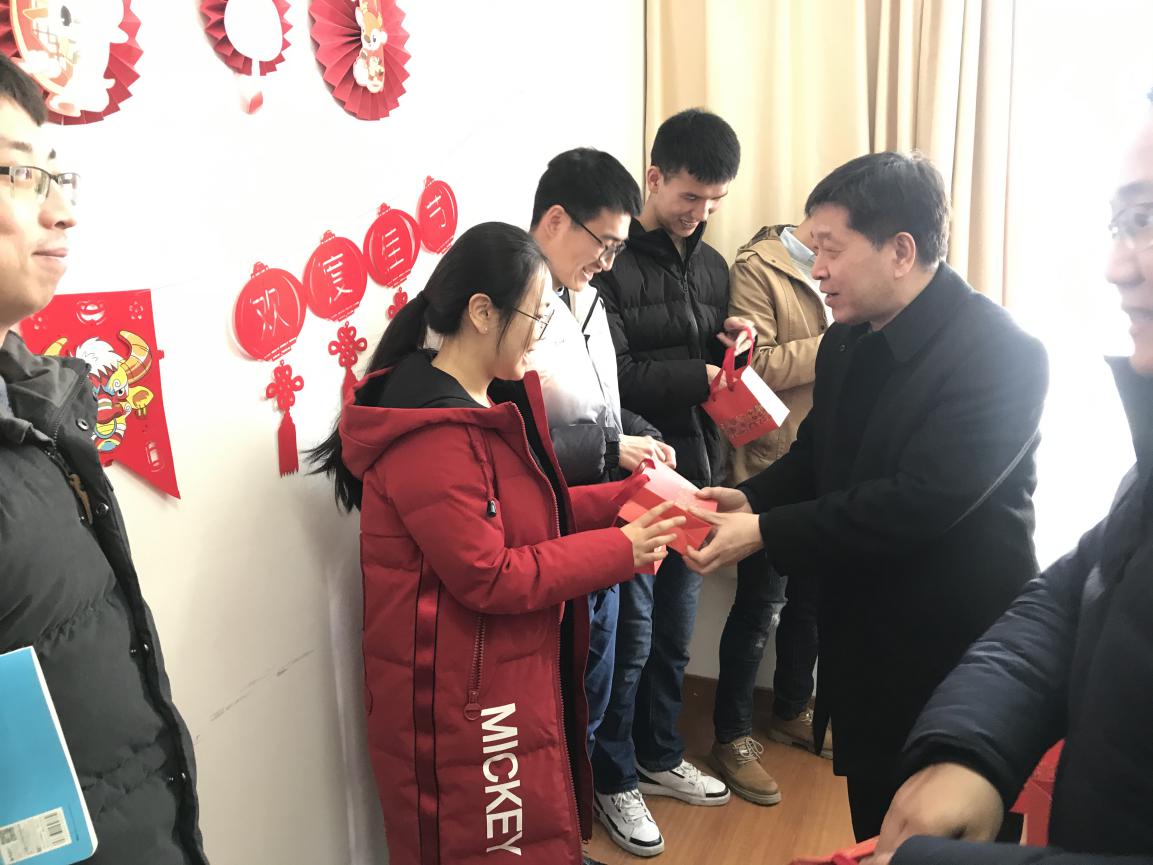 会后,俞董事长、李董事长及学院领导为同学们送上学院精心准备的祝福盲盒、新春大礼包及防疫健康包,师生互道祝愿互拜早年。