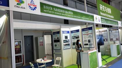 公司组织了一批学院优秀科研成果参加本届展览会,受到与会参观人员的高度关注,其中:“全数字化簇绒地毯织机”成果通过若干个电子罗拉同步控制纱线张力以及喂纱量形成不同高度的绒圈,结合不同颜色纱线的排列组合,提高了企业产能;“数字化经编机系列装备及其智能生产关键技术”成果实现了工艺参数数字化控制、成圈三参数数字化调控,实现了智能故障诊断和远程运维等功能;“增材印花鞋面及其运动鞋自动化生产线”成果原创开发了3D增材印花一体化鞋面成型工艺,研发成功了冷粘、连帮注塑运动鞋机器人自动化生产线;“高档织针研发系列产品”成果已被织针行业推广应用,有力推动了电脑横机移圈针、棉袜针和高速经编机槽针的国产化进程;“金属强化及涂层制备技术”成果依托于国家863项目、上海市重点攻关项目等,极大提高了热轧带钢用铸铁轧辊的使用寿命;“制造全流程的数据可视化及交互系统”成果基于业务需求与精益生产理念,制定了执行系统中生产执行、质量管理、设备管理、仓储管理、运维管理的规则与流程,有效降低了制造资源浪费,实现了制造全流程的数据可视化及交互;“织物疵点在线检测系统”以计算视觉为技术核心,研发了影像检测剔除系统、封口影像检测剔除系统、材料定位影像检测控制系统,填补了国内卫生用品在线检测技术空白;“新兴纺织服装产业集聚区网络协同制造集成系统”成果以多品种、小批量、个性化定制纺织服装产品生产为对象,研发了基于工业互联网模式的智能工厂应用示范并实现区域内推广;“基于多孔介质干燥理论的针织物烘干过程数值模拟及参数调控”成果依托国家重点研发计划,为平幅织物烘干工艺的改进和设备研制提供了解决方案;“服装生产线数字孪生系统”成果依托上海市经信委项目,促进了服装生产线管理效率的提高;“化纤长丝外观在线智能检测系统”成果攻克了化纤长丝外观视觉检测技术,实现了连续、高效的在线智能检测,突破了化纤长丝卷装外观智能检测系统关键技术并产业化,提升了行业的生产效率;“全自动喷丝板智能化检测及数据管理系统”成果利用机器视觉检测技术,实现了喷丝板孔全自动检测。