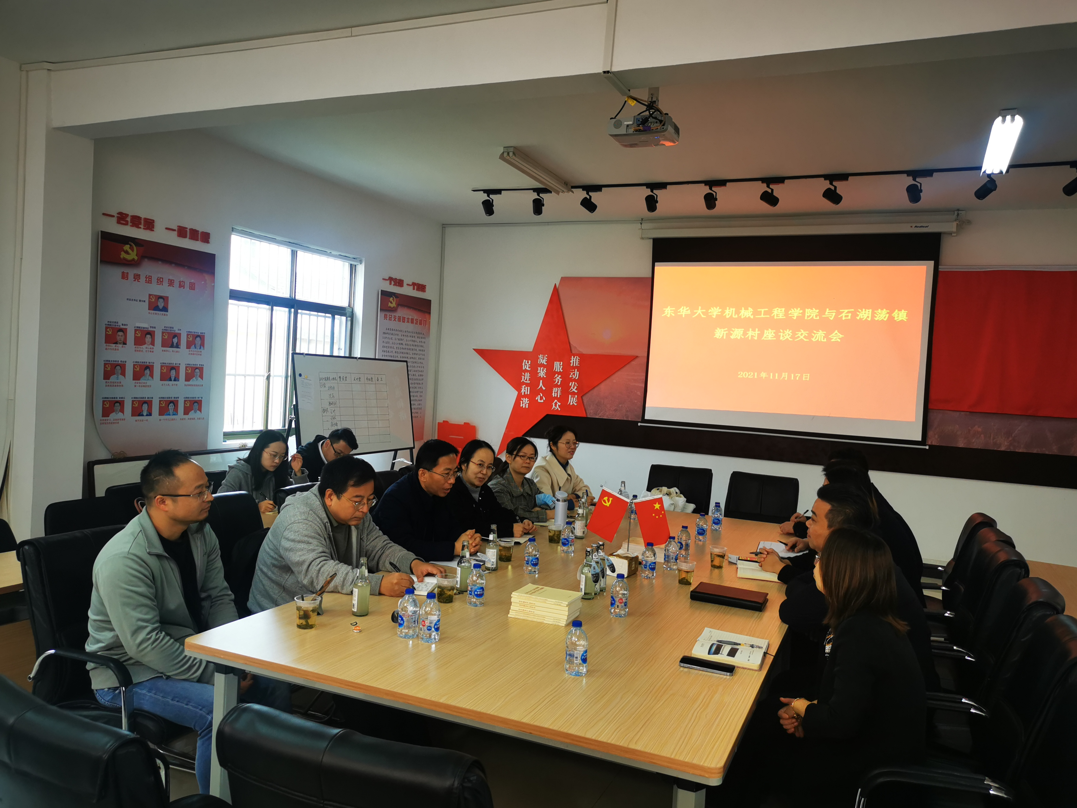 11月17日,由机械公司党委书记王新厚带队一行前往石湖荡镇新源村开展专项调研交流,新源村党总支书记曹宇辉、新源村党总支副书记、村委会主任王叶等村两委班子成员陪同接待并与王书记一行座谈交流。党委副书记李宁蔚、工业设计系主任周丰、工业设计系莫伟平、员工工作办公室主任安晴晴、副主任胡敏等专职辅导员一同参加调研。