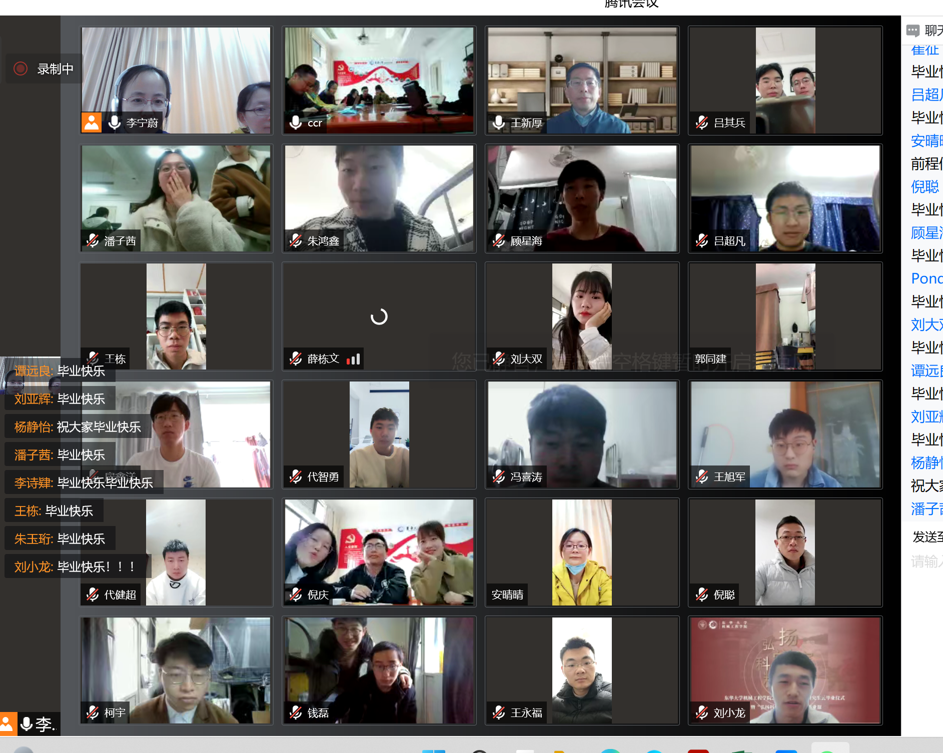 云毕业仪式上,播放了毕业班员工精心制作的毕业视频《珍重•再见》,一张张过往的照片,一段段饱含深情和希冀的话语,都是对过往研究生生活最美好的纪念。云毕业仪式在“云合照”中结束,同学们在云端告别,怀揣信念、才华与梦想,去把青春华章写在祖国的大地上。