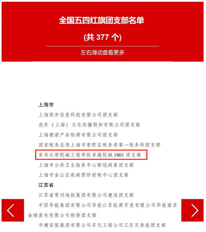 近日,从共青团中央传来喜讯,公司best365中国官方网站卓越机械1801团支部荣获“全国五四红旗团支部”称号,为全国“两红两优”表彰中上海市七个“全国五四红旗团支部”中的唯一一个高校团支部。