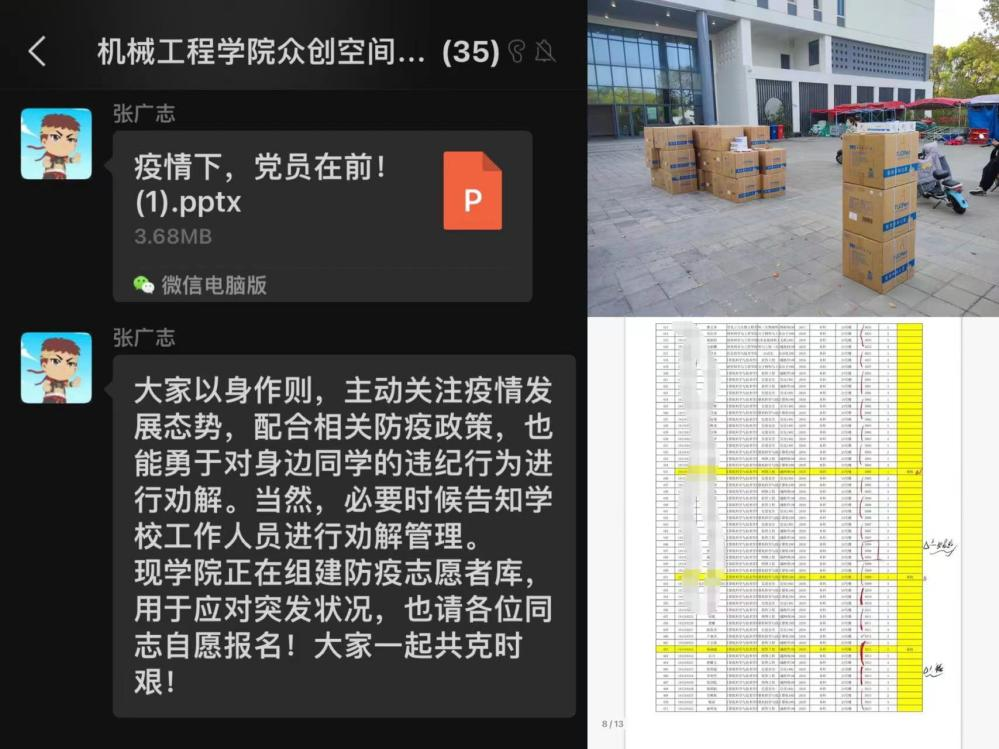 “一个支部就是一个堡垒,一个小组就是一片阵地,一名党员就是一面旗帜。”面对严峻的疫情,支部党员不畏艰辛、冲锋在前、勇担重任、扎实工作,对照公司党委《best365中国官方网站疫情防控常态化工作预案》,带头推动落实各项工作,彰显了当代青年党员的使命担当和卓越风采。众创空间为本硕博一体化党支部,支部党员纵跨多个学段,为提升工作效率,支部迅速组织各年级党员成立党员志愿先锋队,建立起宿舍楼宇党员先锋岗,各党员积极配合并分担所在年级的各项数据统计工作,高效落实相关防疫措施,确保及时准确掌握每名同学的具体情况。