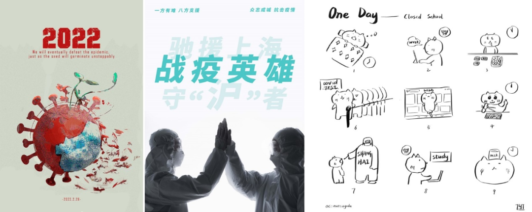 为传递东华人共同抗疫的心声,支部党员充分发挥工业设计专业优势,以笔为枪、以笔为旗,用线条和色彩定格一个个抗“疫”瞬间,以艺术抗“疫”的微微星芒,凝聚疫情一线的温情力量,暖人心、聚民心、强信心。