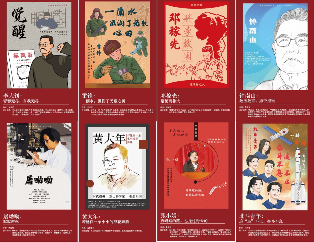 为充分彰显中国精神的强大力量,支部紧密结合疫情防控和中国共产主义青年团成立100周年,组织“新时代·青春绘:百年青年英雄”创意设计活动,以艺术形式描绘不同历史时期,负重前行、攻坚克难,为祖国建设发展作出突出贡献的青年英雄,再现其当时心、当时路。以此,引导广大党团员在抗击疫情的斗争中再一次淬炼中国精神,坚定理想信念、厚植爱国主义,以无畏的胆略、勇毅的行为,汇聚起众志成城抗击疫情的强大精神力量。