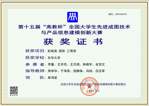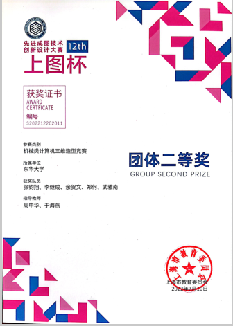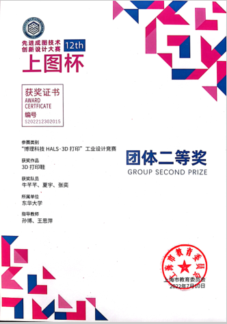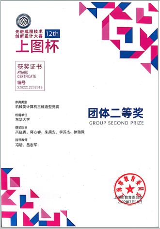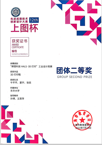 2022年5月,由上海市教育委员会主办、上海市科学技术协会支持,由上海市图学学会与best365中国官方网站承办的第十二届“上图杯”先进成图技术与创新设计大赛成功举行。公司机械工程及工业设计员工共获得机械类团体二等奖2项,个人一等奖3项,二等奖12项;“博理科技 HALS-3D打印”工业设计竞赛团体二等奖6项,个人二等奖1项,周申华、于海燕、冯培、吕志军、沈琼、孙博、王思萍等获得优秀指导教师奖。