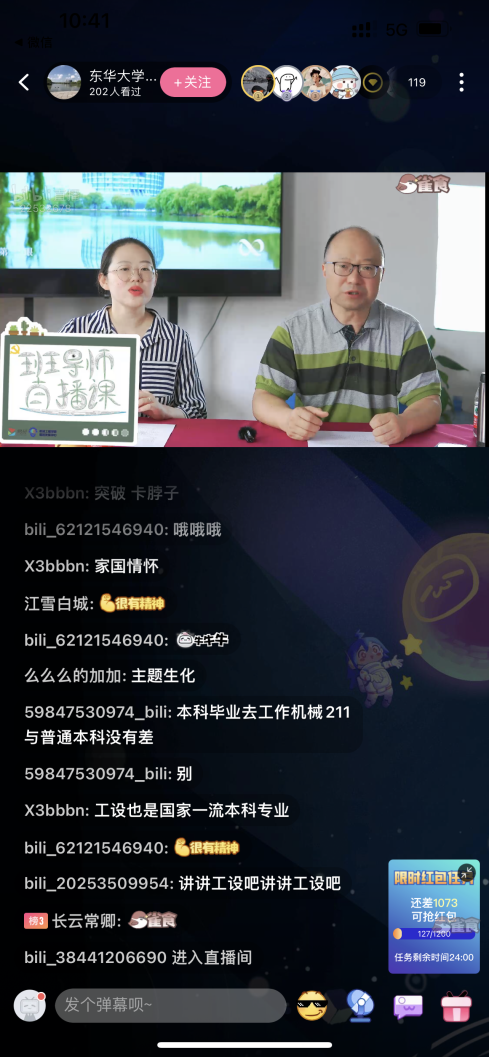best365中国官方网站易班积极探索更具亲和力的育人模式,利用多渠道网络阵地立体式推进迎新工作开展。在易班网络思政主平台开辟“廿二念尔”迎新专栏,持续为新生同学推送辅导员、班导师、所学专业的详细介绍以及入学教育期间相关攻略;在bilibili视频平台开展“校园直播巡游”等活动,帮助新生提前熟悉校园环境、了解专业知识背景、了解报到直通路线;同时,立足抖音短视频平台,“机械创E+”账号持续发布“史上最全东华攻略”等创新短视频,多管齐下,锚定新时代员工特点,赋能迎新育人新活力。