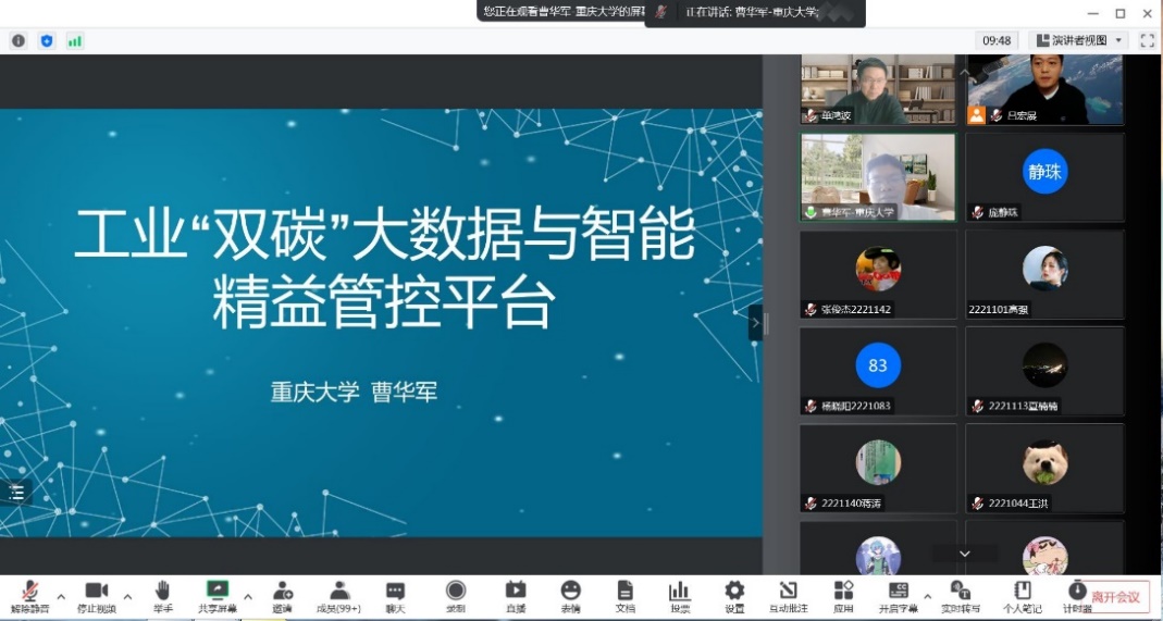 10月18日下午1点半,教育部首届青年长江学者、第三批国家“万人计划”科技创新领军人才、重庆大学机械与运载学院曹华军教授应邀为公司做“工业双碳大数据与智能精益管控”专题学术报告。经理单鸿波、部分学科团队负责人、教师、高年级研究生160余人参加了本次学术报告会。报告由吕宏展副教授主持。