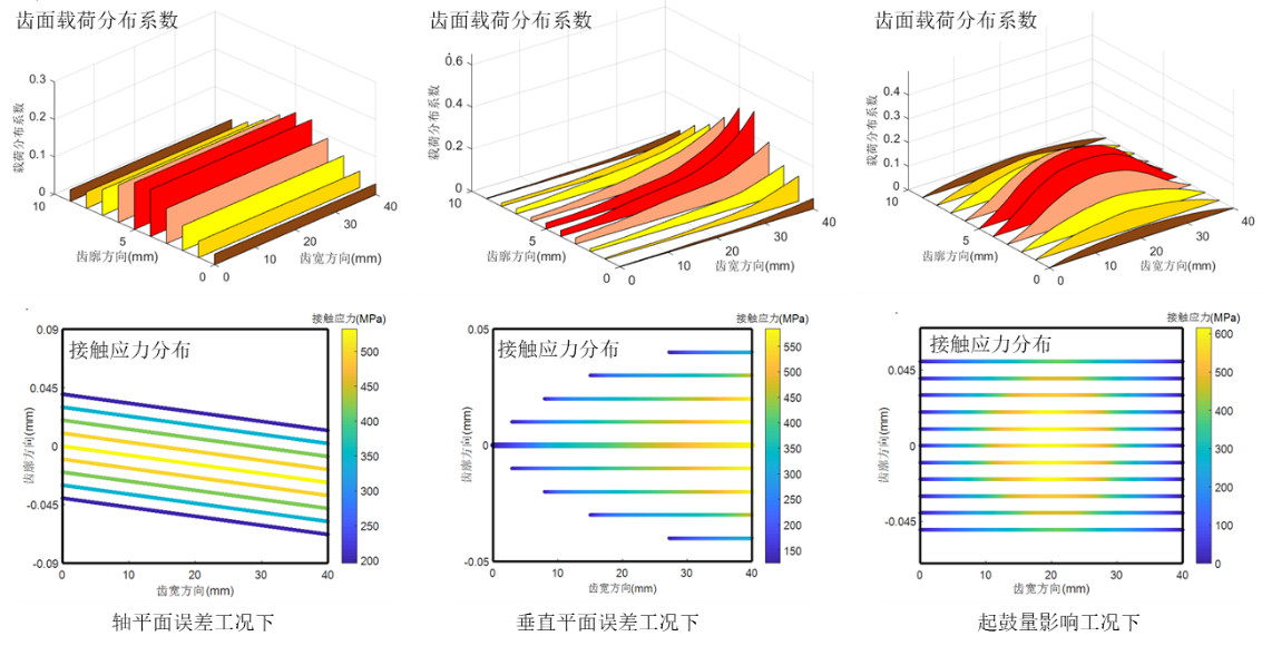 图1 不同误差工况下的齿面载荷分布及接触应力分布