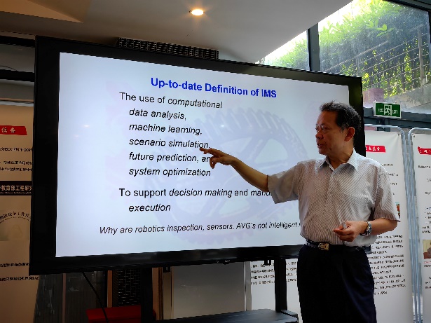 梁教授围绕智能制造系统介绍了智能制造的起源,智能制造的定义以及为什么要智能制造,重点介绍了智能工艺控制、智能质量管控、智能原料供给等。最后,梁教授结合公司学科特色,与参会学科团队负责人及相关青年教师就磨削智能制造和智能物流系统进行了深入交流和热烈探讨。