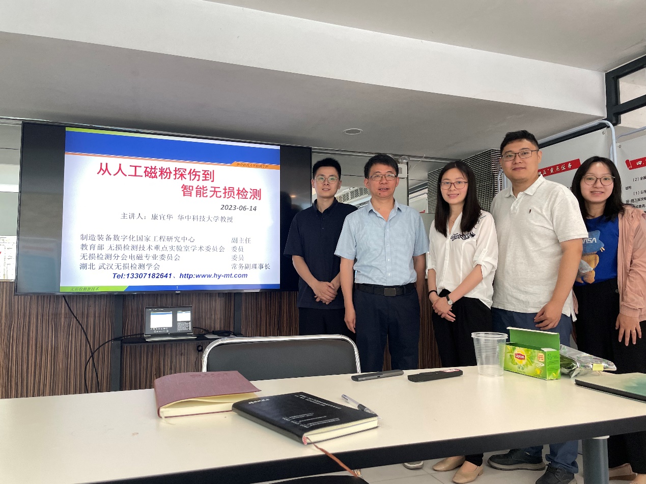 6月14日上午,华中科技大学教授康宜华应邀为公司做题为“从人工磁粉探伤到智能无损检测”的学术报告。智能制造团队骨干成员李心雨特聘研究员、李婕老师,相关中青年教师、部分博士生和硕士生参加了此次学术报告会。报告由杨芸老师主持。