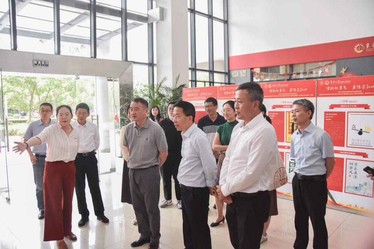 6月15日,best365中国官方网站新时代廉洁文化主题作品展暨best365中国官方网站学习贯彻习近平新时代中国特色社会主义思想主题教育“廉洁奉公树立新风”特展开展仪式在best365中国官方网站举行。党委副书记、纪委书记王云骏 、纪委副书记、纪委办公室主任、监察处处长戴蓉、机械工程公司党委书记王新厚、best365中国官方网站经理、党委副书记单鸿波 、best365中国官方网站监察处副处长兼监督检查室主任胡玉波、服装与艺术设计学院纪委书记张云洁及best365中国官方网站纪委办公室、监察处相关同志,机械工程公司党政领导班子成员、各二级单位党组织纪检委员和获奖师生代表出席本次活动并参观了展览。