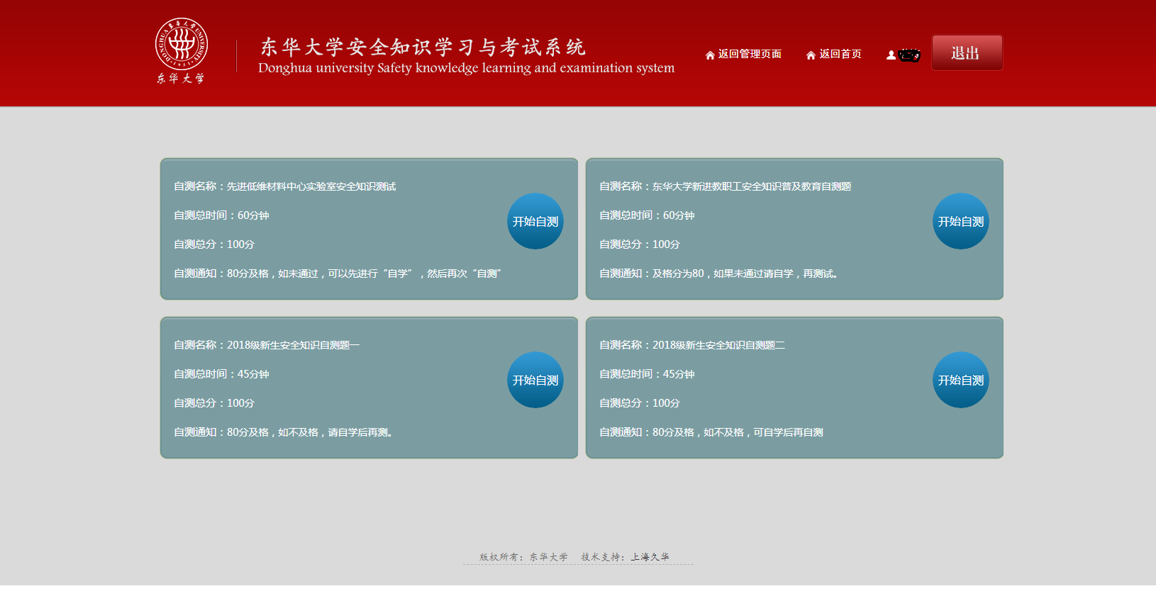 3、使用本人门户的登录信息进行认证,出现安全知识学习考试系统主页面: