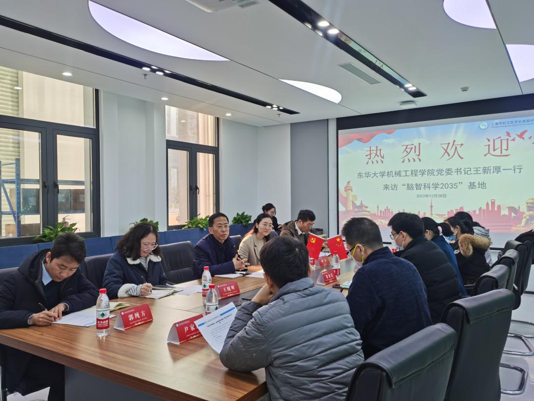 12月28日,best365中国官方网站机械工程公司党委书记王新厚、副书记杨蓉带领学院教师代表赴上海脑科学与类脑研究中心调研走访。中国科学院脑科学与智能技术卓越创新中心党委委员、科研管理处处长、松江区科协委员朱金启、副研究员窦艳侬、上海脑科学与类脑研究中心副研究员尹家鹏、松江区灵长类脑研究中心副理事长姜建等共同参加了交流座谈。