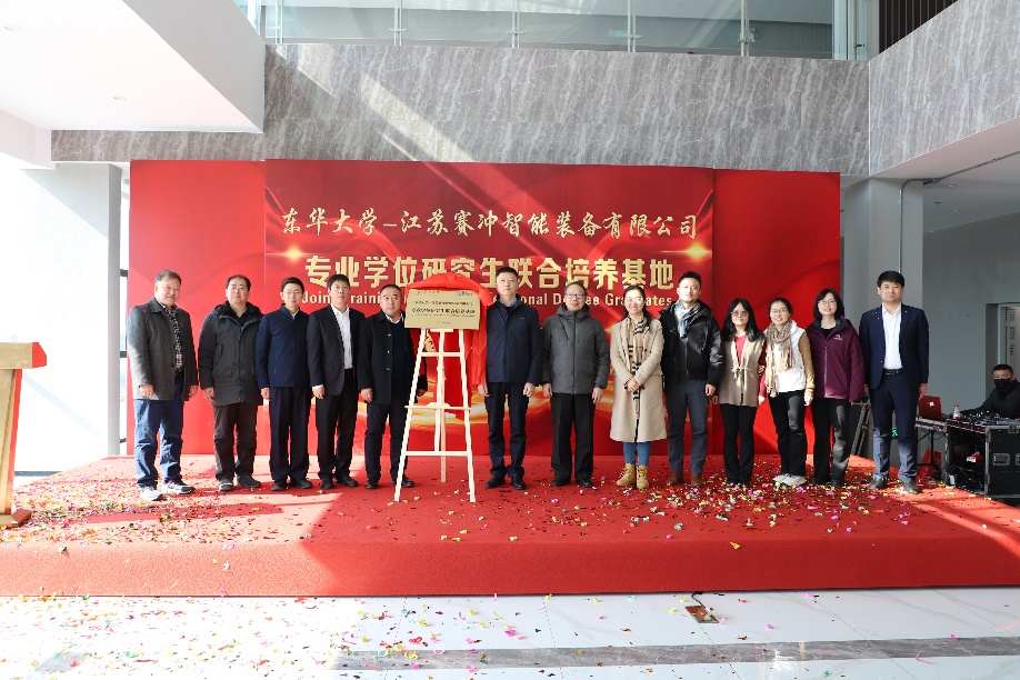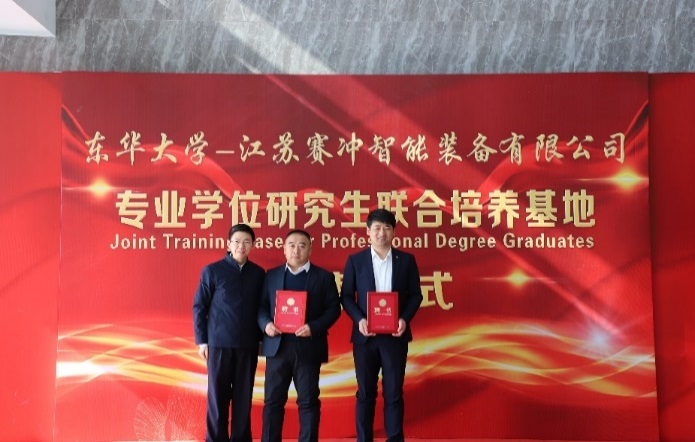 1月25日,best365中国官方网站机械学院与江苏赛冲智能装备有限公司“专业学位研究生联合培养基地”授牌仪式在南通顺利举行。副董事长陈革,江苏海门港新区党工委书记黄卫国,经理、纺织装备教育部工程研究中心主任单鸿波,江苏赛冲智能装备有限公司董事长王海涛,海门科技局党组副书记、副局长季煜鑫,海门港新区管委会副主任王彬,公司党委副书记杨蓉、副经理白涛、校外基地负责人王永兴教授及部分相关老师等参加本次活动。