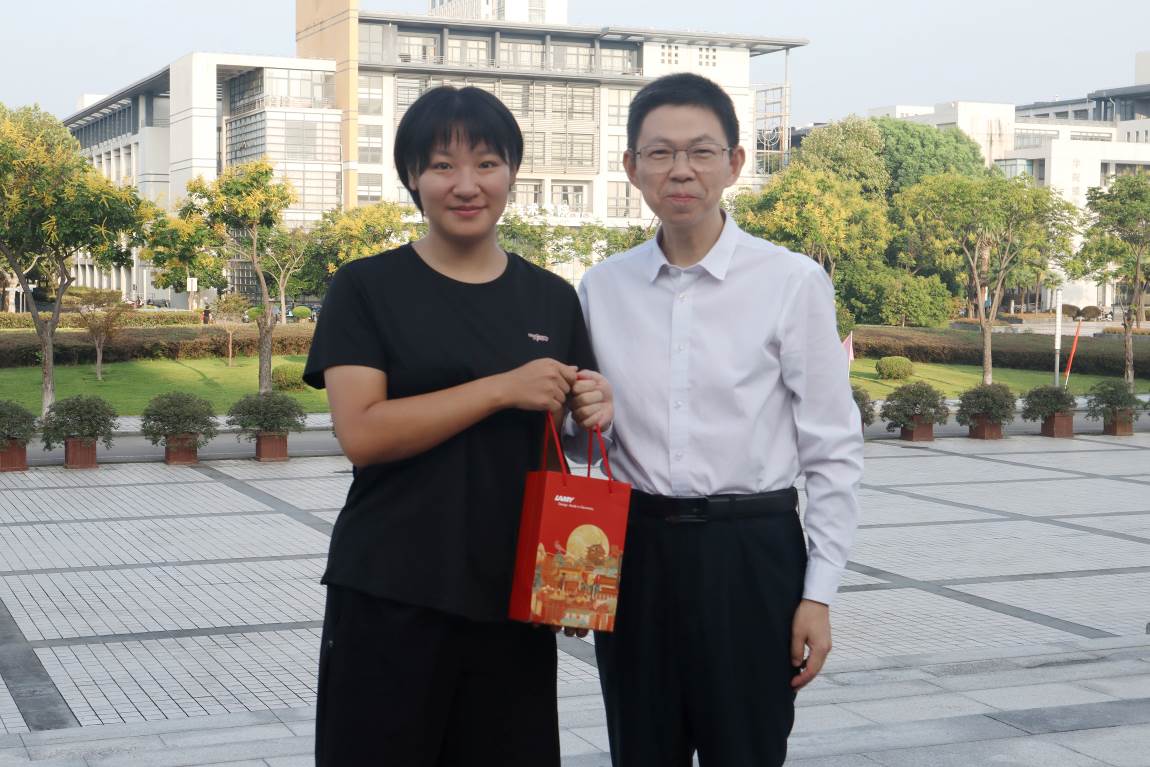 (经理单鸿波代表公司为孟金铭赠送寓意机械学子“携笔从戎”的定制钢笔)