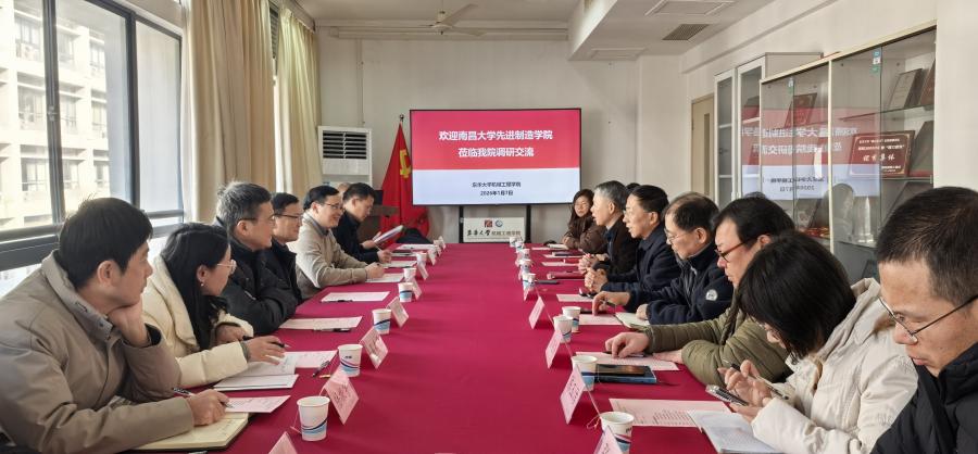 2026年1月7日下午,南昌大学先进制造学院一行赴公司,开展“十五五”规划专题调研交流活动。学公司党委书记王新厚、副经理周其洪、副经理白涛,南昌大学先进制造公司党委书记陈嘉、执行经理艾凡荣、副经理胡罗斌及两院相关教师代表出席座谈。会议由副经理周其洪主持。